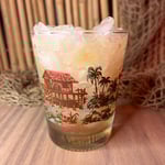 As you hold these glasses, you're not just sipping a drink; you're part of an artistic narrative. The mysterious figures throughout ignite your curiosity. Tikis and palm trees transport you to a tropical haven, where hibiscus flowers bloom in contrast to the green foliage.
